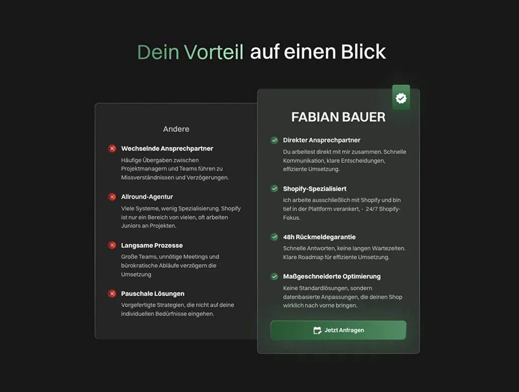 Wir entwickeln eine Strategie, die jedes Detail abdeckt: mit klaren Meilensteinen und einem Zielbild, das keine Fragen offen lässt. Dabei berate ich dich mit dem Wissen aus über 75 erstellten Websites.