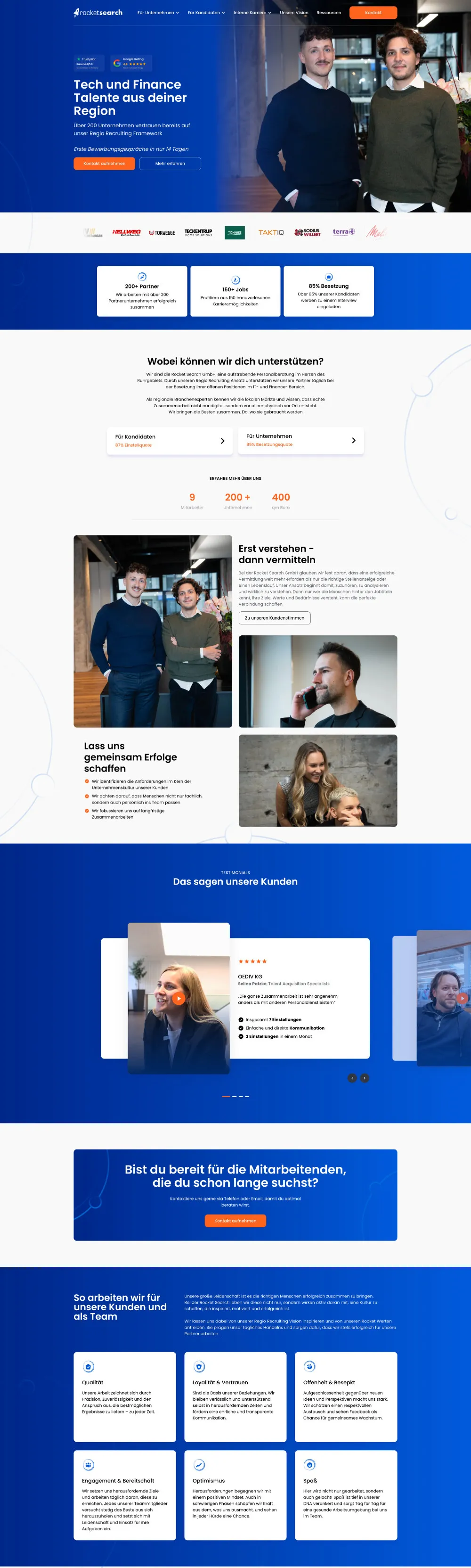 Raketen Website für die Rocket Search GmbH